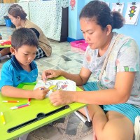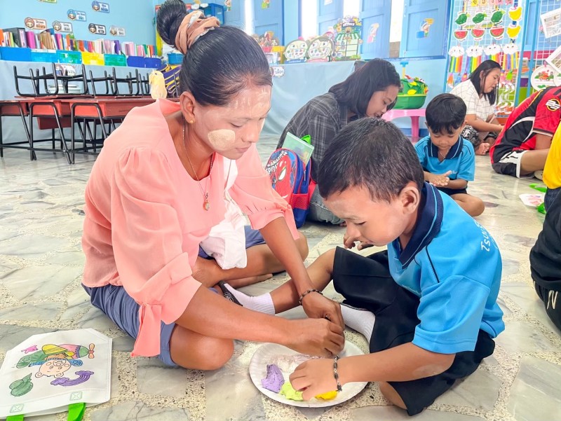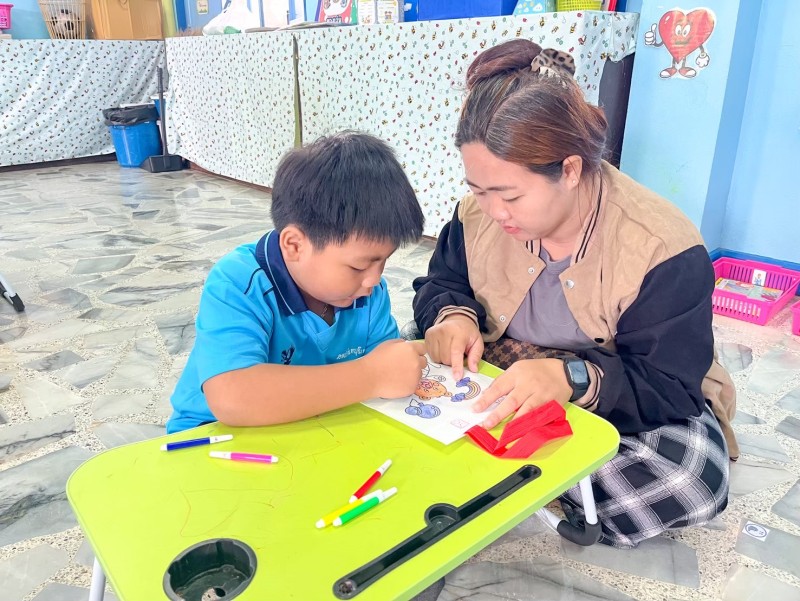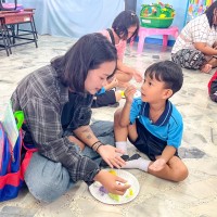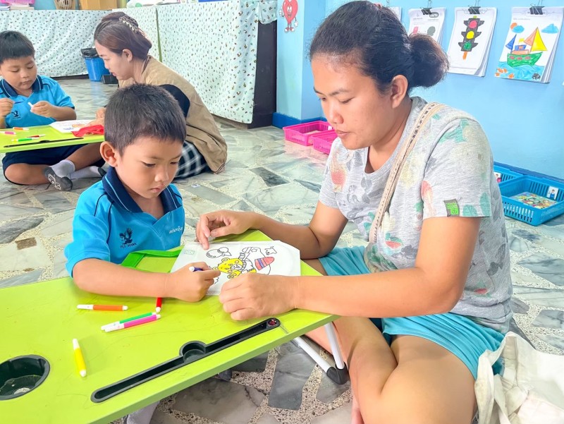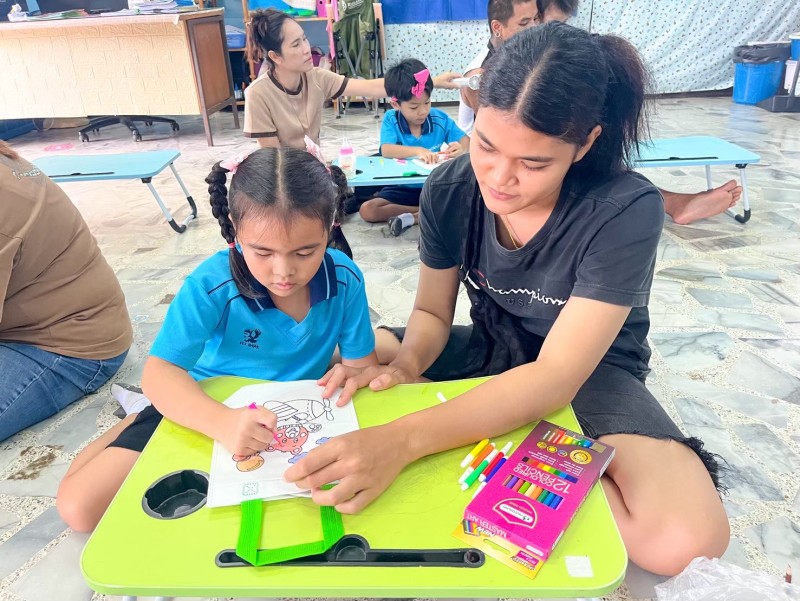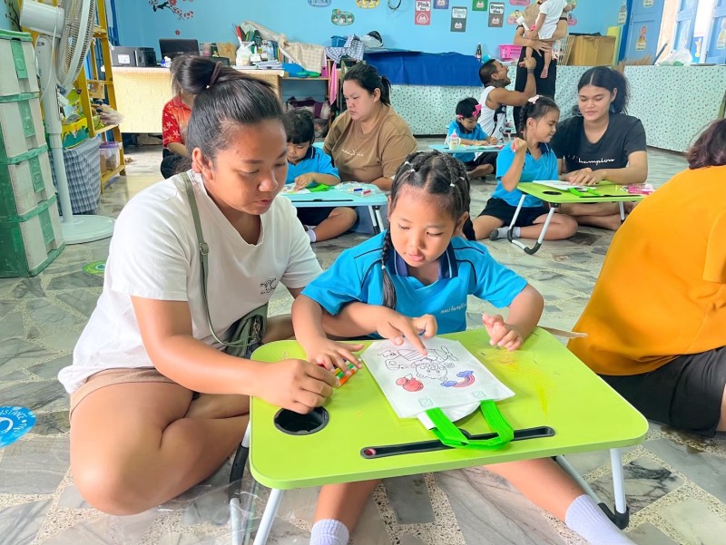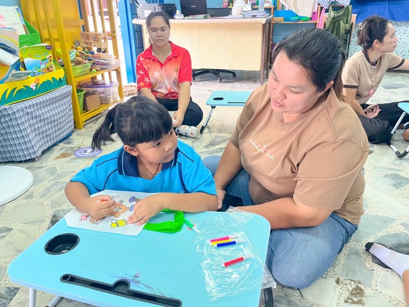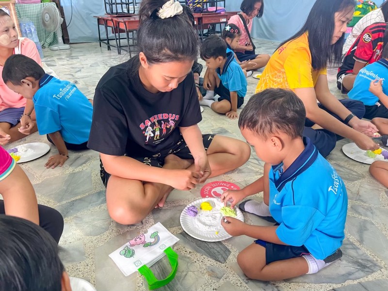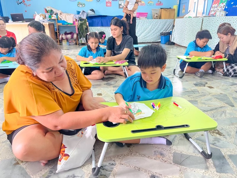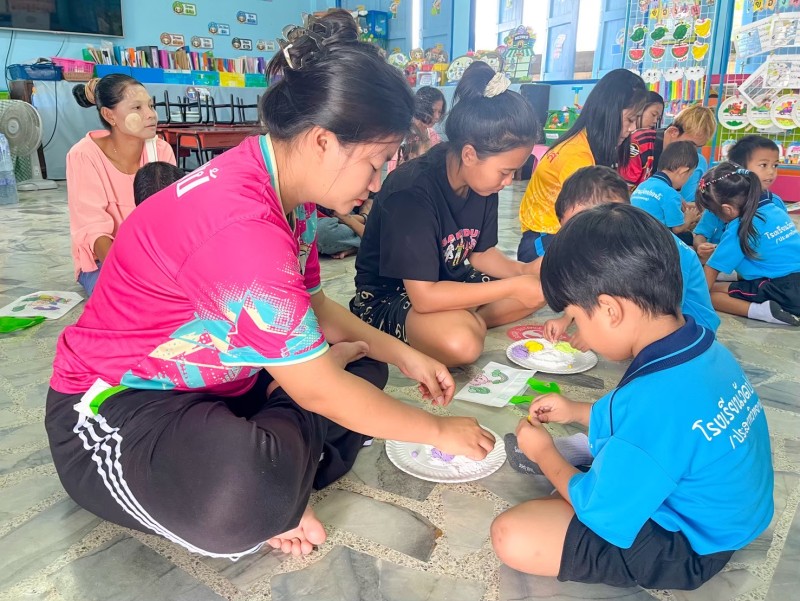กิจกรรม Walk Rally โดยมีการจัดกิจกรรมดังนี้ 1.ระบายสีกระเป๋า 2.ขนมบัวลอย 3.เกมบิงโกพยัญชนะไทย