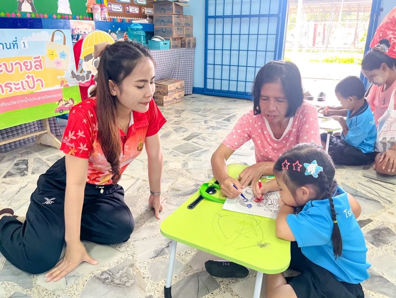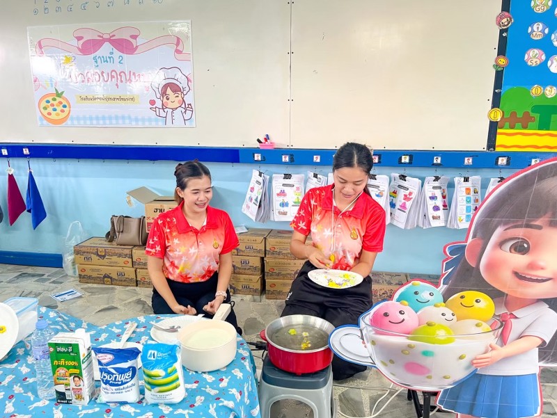 กิจกรรม Walk Rally โดยมีการจัดกิจกรรมดังนี้ 1.ระบายสีกระเป๋า 2.ขนมบัวลอย 3.เกมบิงโกพยัญชนะไทย